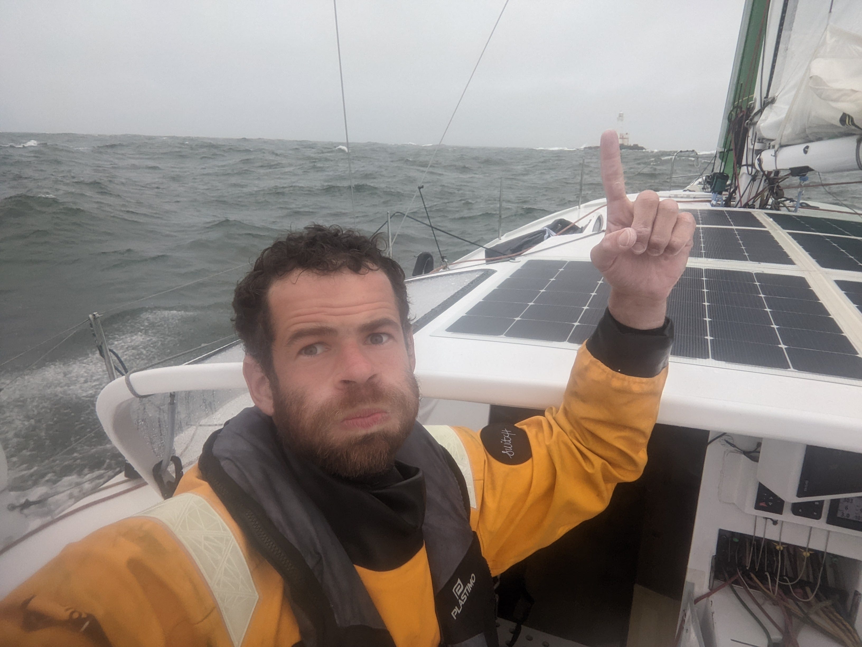 Le jour se lève enfin et nos panneaux nous permettent de recharger à peu près nos batteries. Mais il faut économiser au maximum l'énergie pour pouvoir tenir toute la nuit suivante. Toujours pas de pilote donc, ni d'ordinateur et de routages mais nous pouvons au moins avoir les instruments (direction du vent, vitesse) qui nous permettent de mieux barrer le bateau. Nous ne lâchons rien et barrons en continu le bateau malgré les conditions ventées et agitées. Et notre combat est très honorable, car à l'arrivée en Bretagne nous tenons bon notre 11e position au classement !
