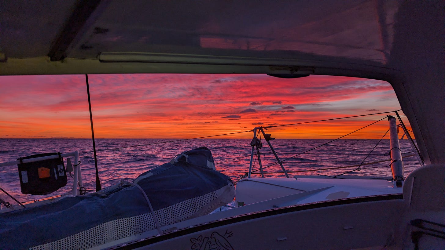 Le convoyage a été long : pas moins de 18 jours. Nous n’avons pas choisi la route que nous aurions empruntée en course ; l’objectif était avant tout de minimiser les risques, de préserver le bateau et d’éviter la casse.