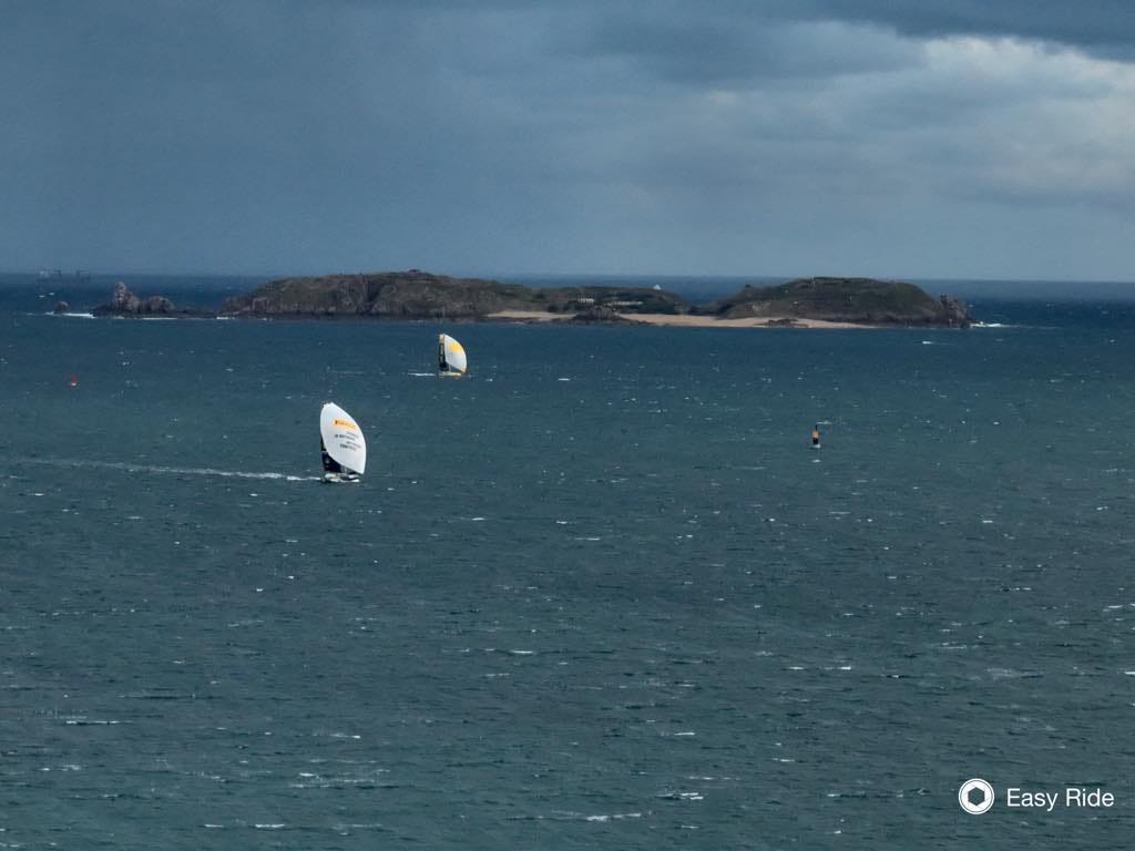 Sur le dernier tronçon de course, on a eu plus de mal à faire marcher le bateau. Le vent venait de derrière, la mer était courte et assez formée en raison du courant. Ce n’est pas l’allure favorite du bateau, à l’inverse du bateau de notre poursuivant Pirelli. Nous n’avons pas réussi à les contenir et nous leur avons cédé notre première place. On a tenté une dernière option à la toute fin du parcours mais ça n’a pas suffit. Ils finissent moins de 4 minutes devant nous !
